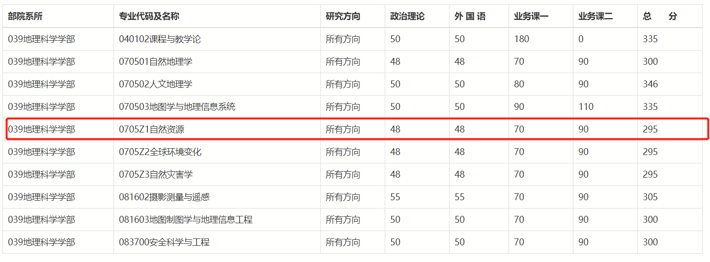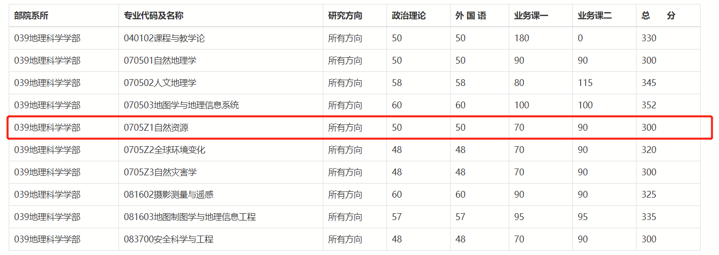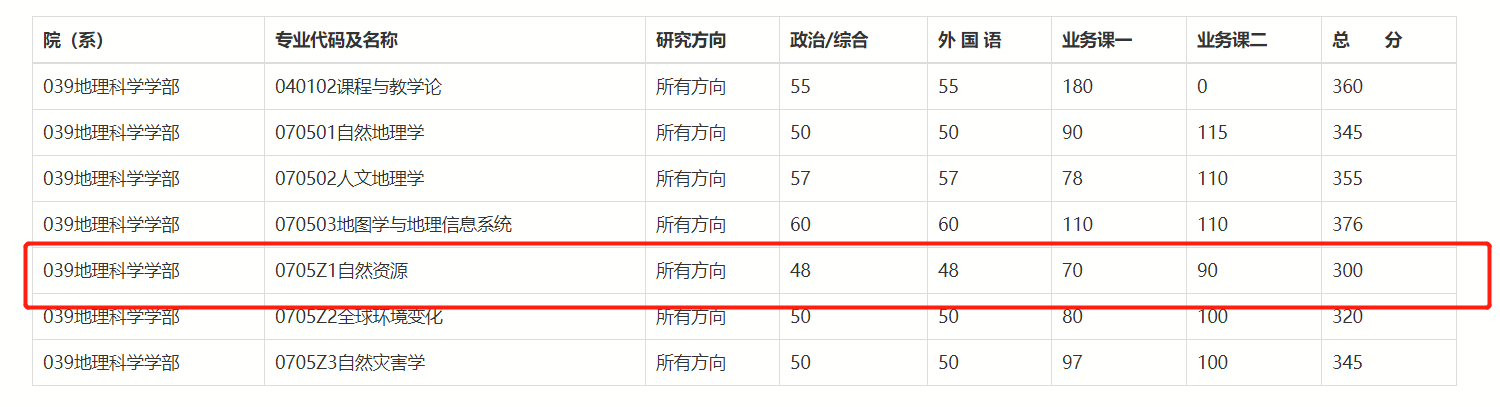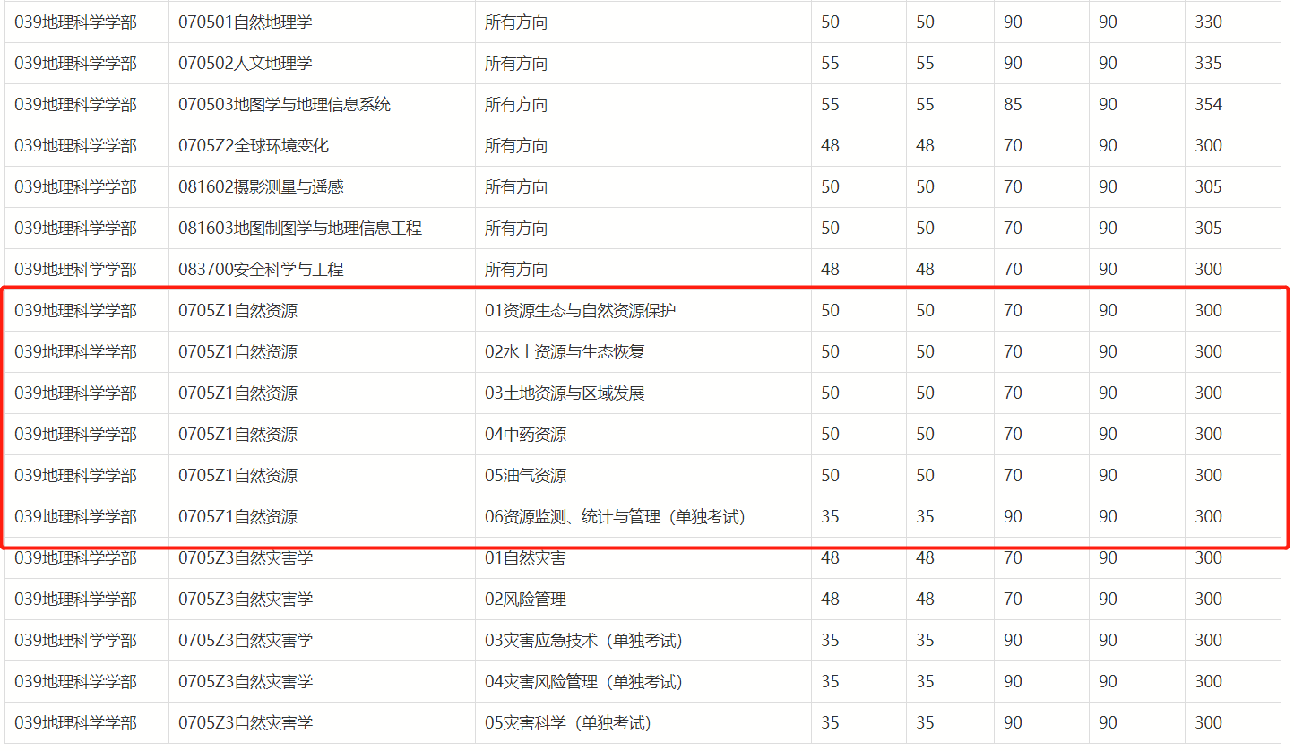 可以看到近几年北师大自然资源的复试线较为稳定,300分即可进入复试,但近年高分层考生数量并不少,且由于招生人数较多、分数线较低的原因,会有爆热的潜在可能。此外,近两年录取名单的最低分数都在335以上,考虑到复试的情况,建议将目标分数定在360—380会比较保险。
