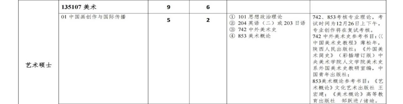 (四) 关于复试准备:进入复试就说明你已经成功了百分之80了,所以首先一定要放轻松。复试一般有三门,第一门是国画创作6个小时,需要在6个小时之内按照题目要求现场创作一幅最小四尺对裁的大幅作品。一般都是人物,山水花鸟三选一,各种绘画方式都可以,按时画完就行。人物一般都会要求多组人物,所以大家在准备人物画的时候一定要选择一个人物多的去默写,山水画一般会要求人,动物与自然相结合的那种题材,所以大家准备的时候一定找一幅什么都有的去练习。花鸟一般会要求画很多种花卉加上不同种类的飞虫。因为只有6个小时,所以建议大家不要找太复杂的作品,适合自己就好。第二门是美术史的一些提问环节,一般会问到中国近现代的一些画家的主要思想,还有一些对本专业的自我认识以及对自己未来的规划。第三门就是英语口试,一般会问很简单的两个小问题大家不要慌张,认真回答分数就会很高的。