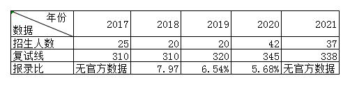1.2021年复试分数线338,共45人进复试,招收37人,录取比例0.82。较之2020年,实在友好太多。
