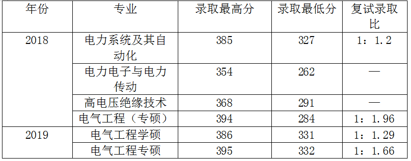 2018-2019电气录取分数线