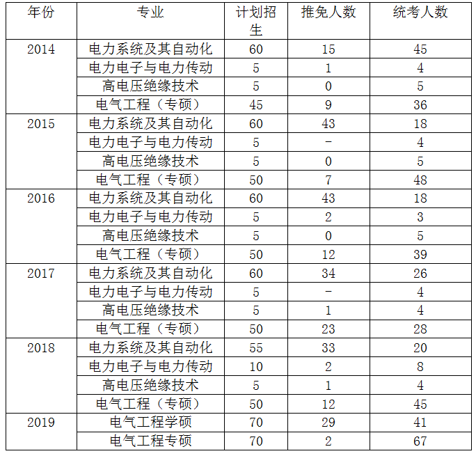 2014-2019电气招生计划