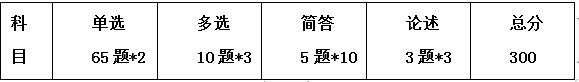 专业课的类型分布如上表所示,选择题160分,简答论述140分。