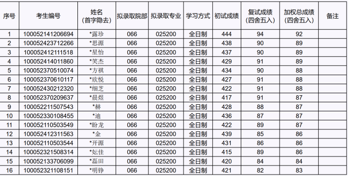 北京工业大学应统专硕招生人数近两年官网上名额变动不大(如下图),其中推免的人数基本固定,如果推免人数不够,名额会加到统考人数上。 该校本专业复试线2021年390分,2022年410分,今年统计学国家线已经到达了360分,因为统考科目数三和英语、政治今年不是很难。本校进入复试比例在120%左右,所以复试线分高并不是有意卡人,只是今年统计学高分的太多的,所以同学们确定院校后认真复习即可。录取人数2021年20人(补录了一人),2022年16人(拟录取名单如下图),基本与招生人数名额相同。报录比本校并不公开;导师近两年并无变动; 本专业指定参考书近几年没有变化,可放心复习。