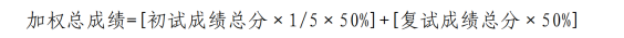 50%。最终拟录取是按初复试成绩加权计算排名确定的,加权成绩计算方法如下: