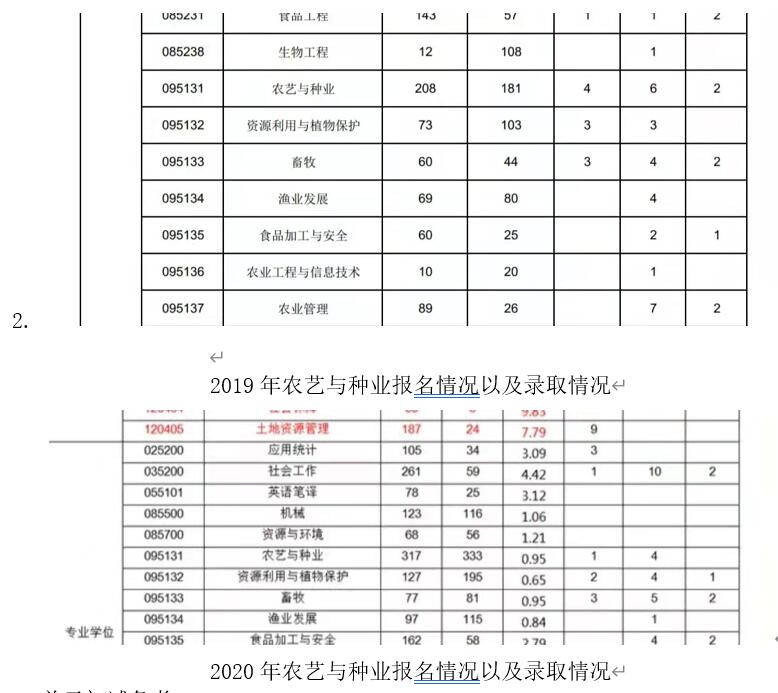当时择校本来是想直接考本校的(本校同专业,难度较小),毕竟是农学类专业嘛,录的人数较多,但是考虑华农是一所211院校,又结合了当年的报录比来看,2019年作物育种专硕当时是报了208录了181,而到2020年的时候扩招了,报了300录了330?这个报录比是不是有点离谱了,本人也是在知乎和各种贴吧上收集到的信息,据说华农农种每年都招不满,我觉得还是很有希望的,因此便想冲一冲,这个报录比算是很低的了,再者,本人本科学的是园林专业,只能报考农学类的研究生