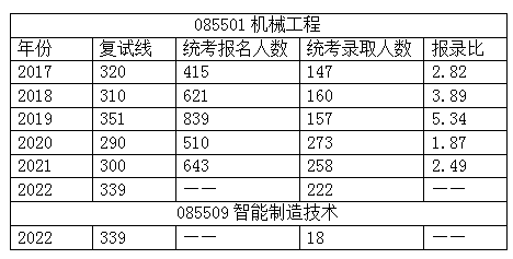注:085509智能制造技术是2022考研新开的专业,本质上是从085501机械工程里分出来的,因为两者考核内容完全相同,复试线也是统一划线。两者的初试科目均为数二、英一、823机械制造技术基础。