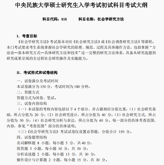 (2)中央民族大学社会学专业考研报录情况介绍、考研难度分析