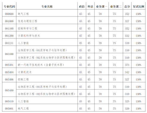 大连理工大学电子信息与电气工程学部22年的复试分数线如图所示。