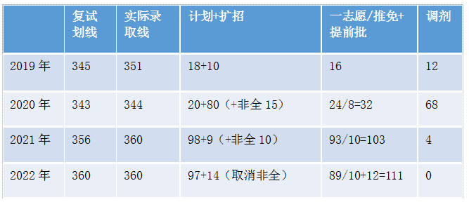 22年报考人数1000+具体未知,录取111人,报录比约10:1,复试比1.2:1,基本不刷高分,每年都在扩招,今年复试录取率99.9%。