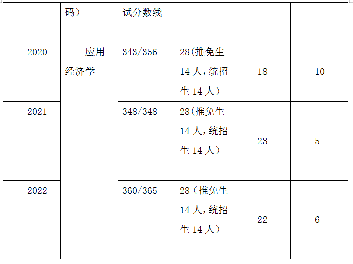 应用经济学专业近三年的报录比(计划招生人数、录取人数、分数线、推免)