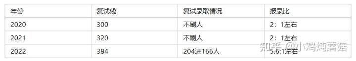 在2022年的复试当中,竞争相对激烈。复旦目标招收166人,有204人进入复试,复试比为1.2;在最后的综合成绩中,初试成绩与复试成绩占比为1:1。初试总分500分,复试总分100分,换句话说复试1分抵得上初试5分。关于22年的成绩分布,最低分为384分,最高分为448分,大部分人分数集中在384至410之间。
