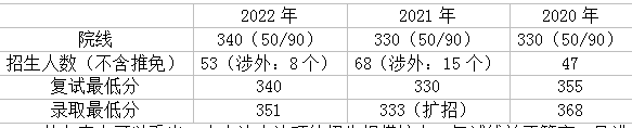 从上表中可以看出,中大法本法硕的招生规模较大、复试线并不算高,且进入复试的人数往往是录取人数的两倍以上,因此进入复试的可能性某种程度上来说是比较大的。但通过复试最低分和录取最低分的比较也能看出,如果是卡线进入复试逆袭也并不是件容易做到的事情。