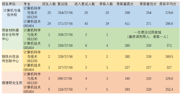 北科关于计算机专业的招生目前有四个单位:计算机与通信工程学院/国家材料服役安全科学中心/钢铁共性协同中心/顺德研究生院。
