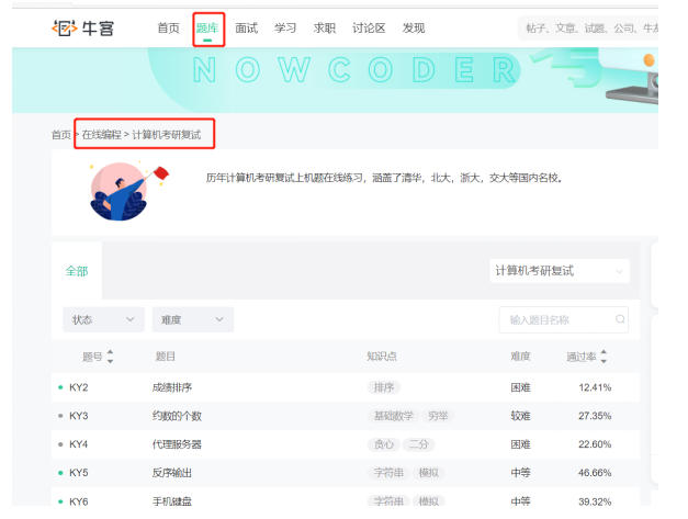 机试部分,刷leetcode或牛客网+看书。我是刷的牛客网以及看王道机试指南。牛客网有一个计算机考研复试专题,可以直接刷这部分。难度选择入门/简单/中等。牛客网的知识点部分也标明的比较清楚,可以看出题型的主要考点。比如说,看完王道的关于字符串的专题后,就可以在牛客网上找相应的题目刷了。