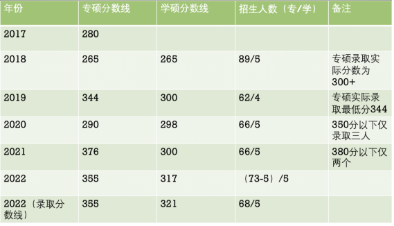 基本情况:上述表格是近几年专硕/学硕的分数线和招生人数等情况,招生基本呈现稳定状态,部分年份如2020年分数线不做参考,因为那一年非全日制和全日制一起划线。
