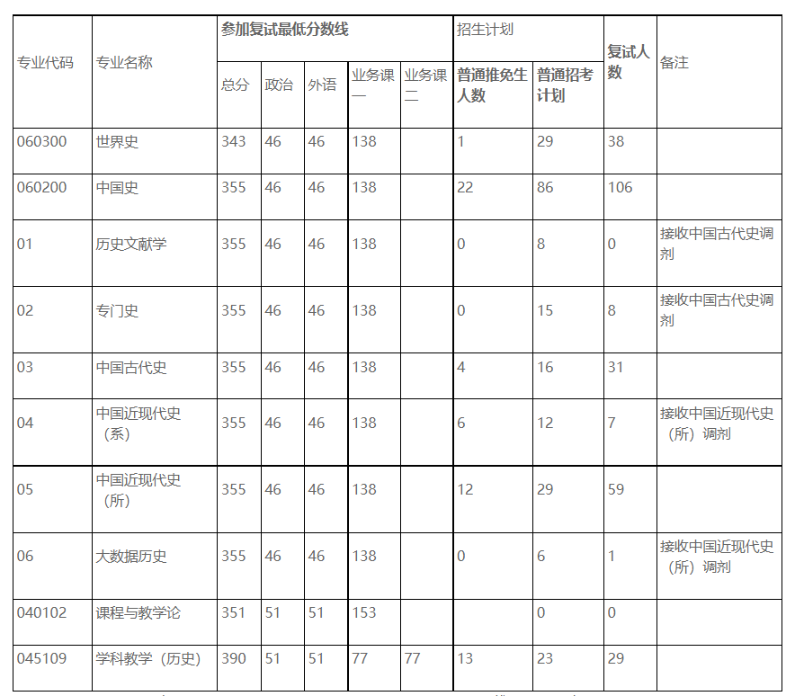 学校官网上内容详细,对于招生工作在官网上可以直接找到下载文件。从学校的招生信息可见,招收中国史106人,世界是29人,招生数量多,考生机会多。