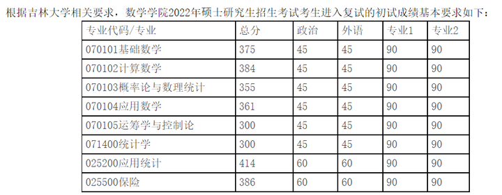 (3) 前两年之前的总分数线是320,,专业课是90,公共课是45:21年总分数线是300,专业课是90,公共课是45;22年的总分数线如下图;