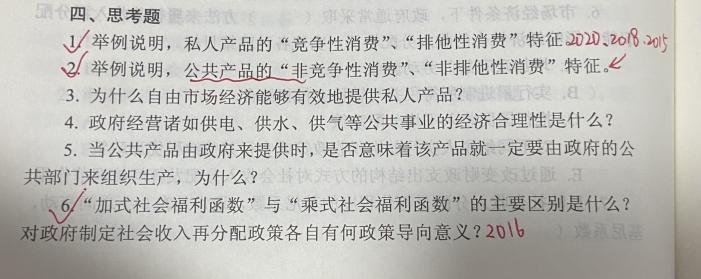 l 财政学原理这本书是一定要揪出重点内容反复背诵+理解的,像第三章引入公共物品前后资源最优配置理论分别在13年、15年、16年、19年反复出现,19年还首次考到了算式推导,类似的知识点还有很多,我会在后续的资料中帮大家标注每一个知识点对应的真题。课后题选择部分可以简单略过,但是思考题要认真背下来,以第一章为例