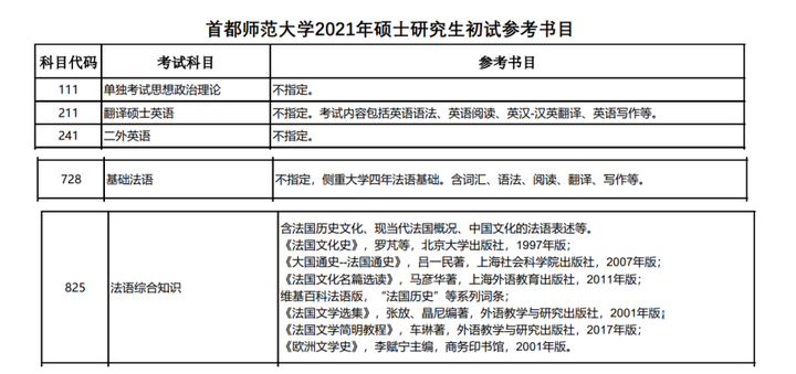 另外需要注意的是:首师大的研究生法语专业只开设学硕,也就是法语语言文学,是不开设专硕(笔译口译)的,所以如果想学专硕的,那就可以绕道而行啦。