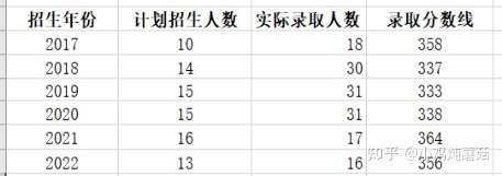可以看出,每年的实际录取名额都会比计划的多,18-20年的录取人数甚至达到了30个,但是从21年开始有缩招的趋势,最终的录取人数比计划只多几个,不会出现30个的情况了。另外,录取分数线也相应提高了,大家的初试分数要尽能考的高一些。
