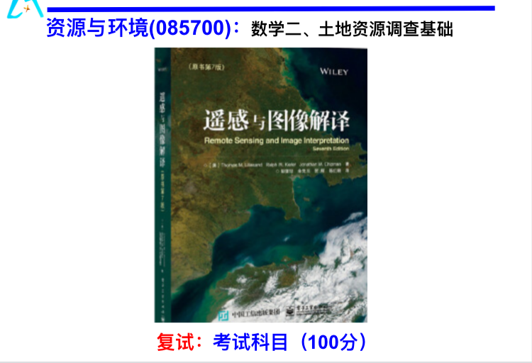 该专业复试的参考书目,《遥感与图像解译》中国工信出版集团,第七版。