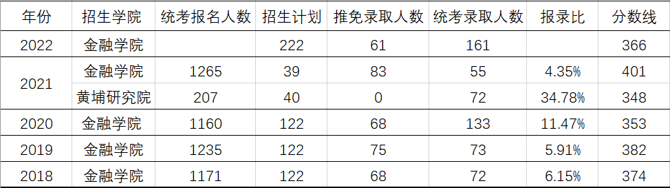 除此之外,从央财近几年的招生数据来看,央财金专的大小年非常明显。今年央财分数线较低的原因主要在于数三英一+北京大旱区+专业课压分,因此366的分数线并不意味着央财金专好考,各位考生还是要结合历年数据做好选择。