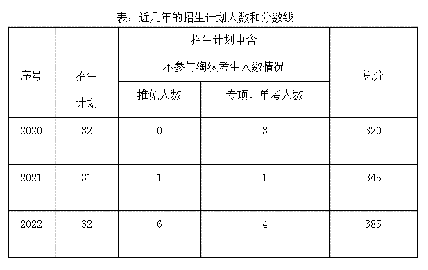 表:近几年的招生计划人数和分数线