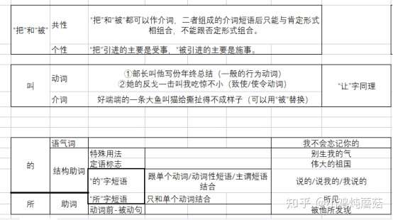 除了不停背书之外,我还做了一件事情就是,把自己认为的现汉中零碎而又很容易混乱的知识点,做了一个Excel的表格汇总,让自己的思维清晰一点。大致如下: