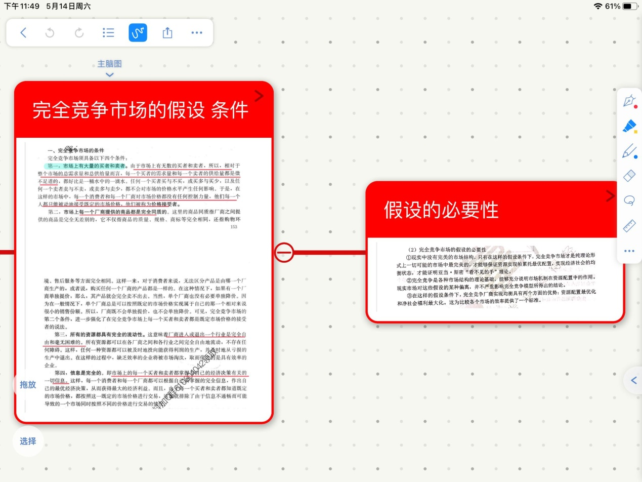 这个阶段就要开始明确考试的重点,同时背一两轮知识点,能够大概掌握名词解释和简答题的要点,对计算题也要加一把握,除了做吉大的真题,也可以做一些其他院校的真题,起到查缺补漏的效果。这个阶段推荐郑炳老师的强化班课程,一般吉大的题目是用不到强化班那么高的难度,但是用郑老师的话来说就是“高维打低维”,我去年是完整听下来的,帮助我对经济学的学习有了更深层次的理解;在背诵知识点的时候,建议对知识点进行一定的梳理,有ipad的同学推荐使用MarginNote 3软件,不用自己再手写一遍,非常方便把所有知识点整合在一起(如下图)。