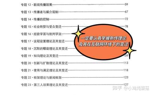 所以大家前期的时候一定要认认真真背诵每一个新传基本的理论知识。像去年就考察了25分的议程设置、10分的新闻价值、还有舆论监督、亚文化等非常基础的理论考点。所以大家务必要做到对理论知识的滚瓜烂熟。