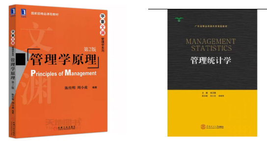 专业课管理学与统计学综合有两本书,第1本是陈传明的管理学,第2本是华南理工出版的管理统计学。这两本书在淘宝上均可以买到,图片如下。