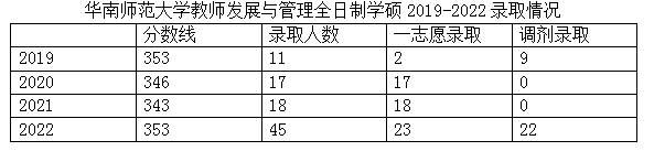 华南师范大学教师发展与管理全日制学硕2019-2022录取情况
