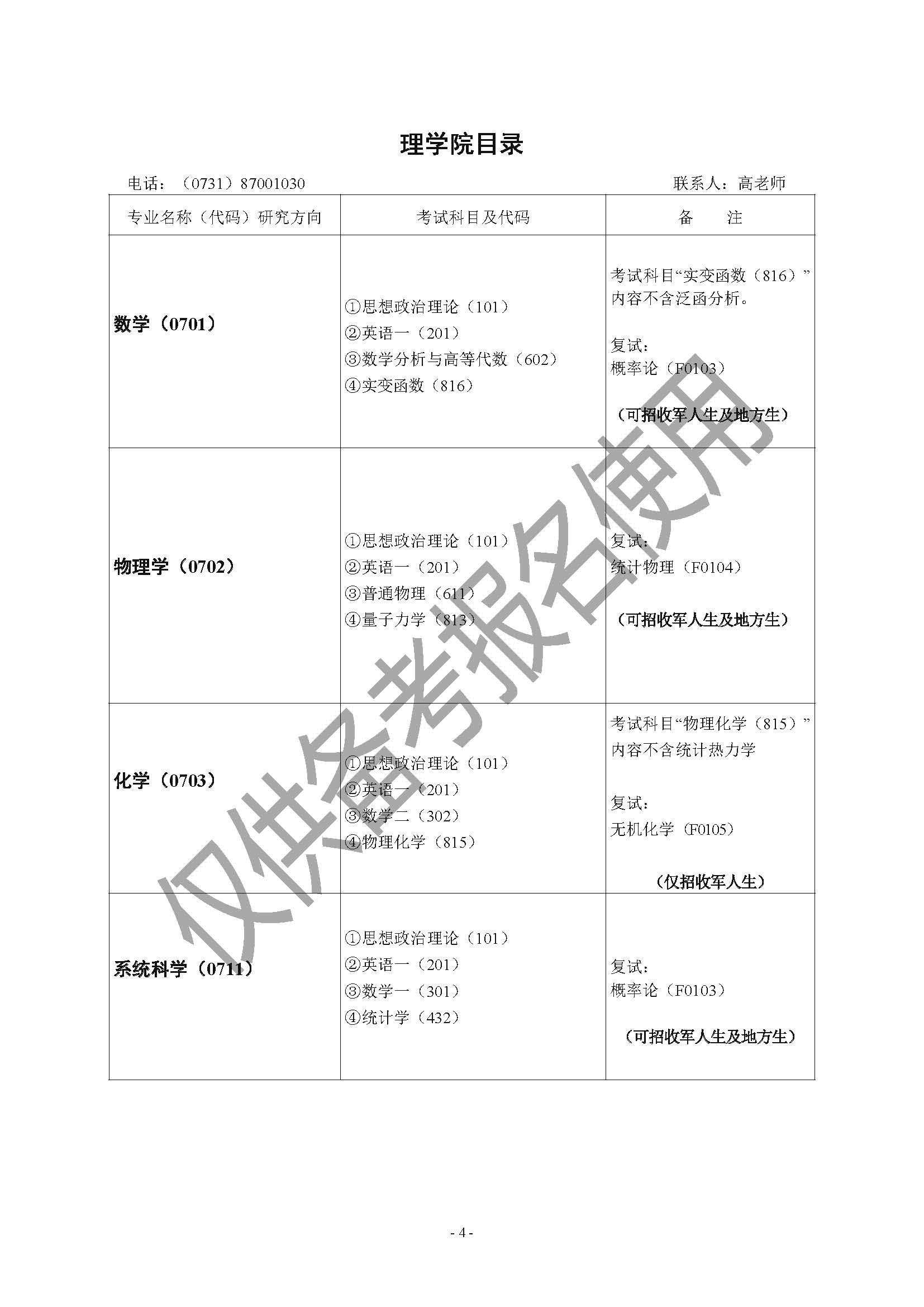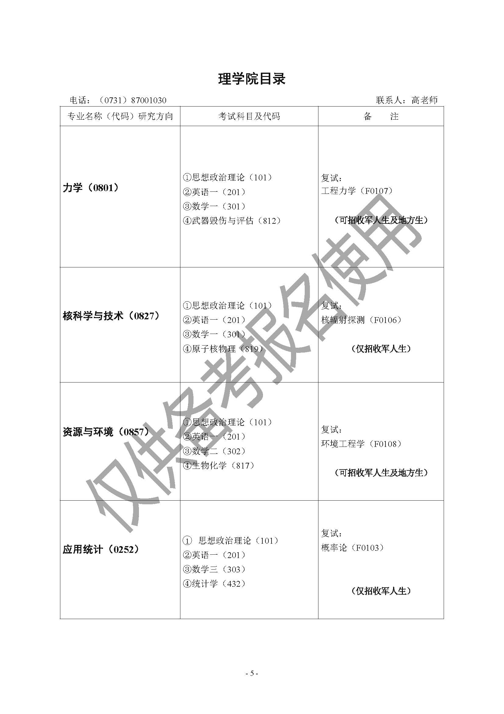2023年国防科技大学考研理学院硕士研究生招生专业目录、考试科目