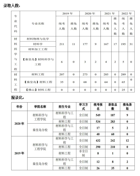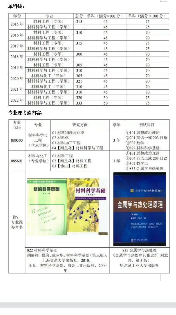 订好了目标院校,然后了解到东北大学往年的录取分数线,下面是近年来东北大学材料学院的报录比,录取人数,单科线划分以及专业课考察内容的介绍: