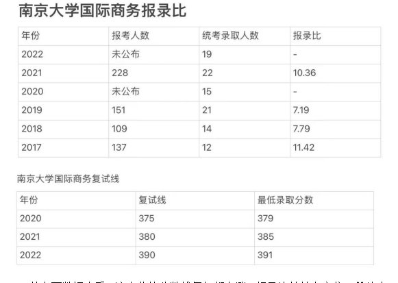 作为想要报考南京大学国际商务的考生来说,清楚地了解该专业的报录比、往年分数线、考试科目是必要的。下面是学姐整理的往年数据: