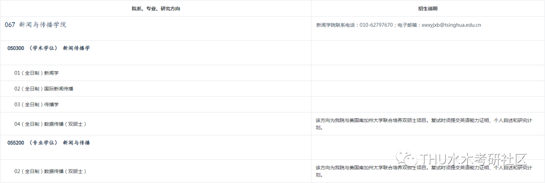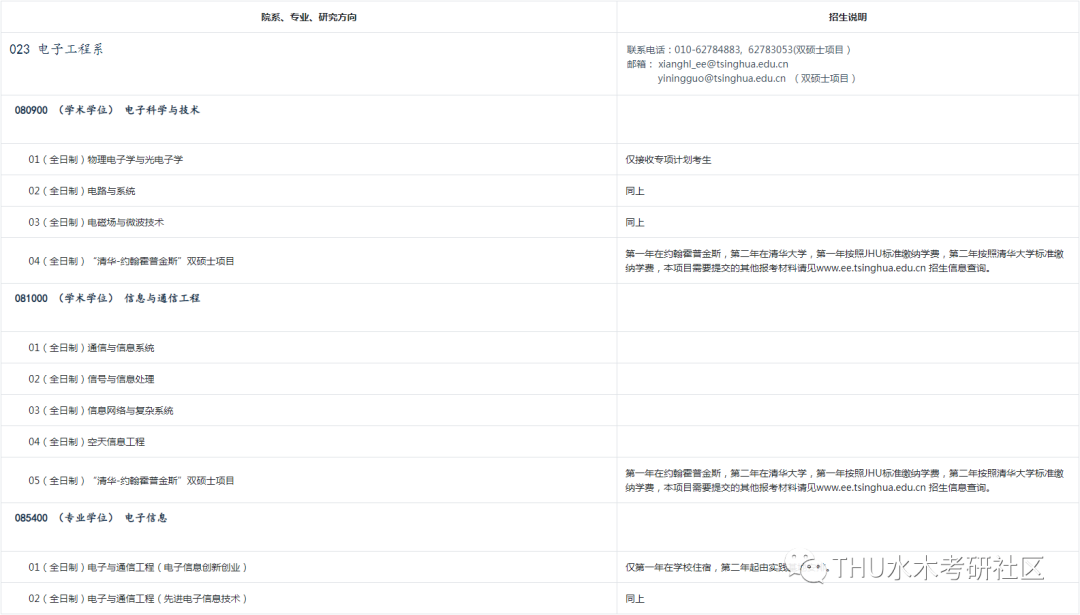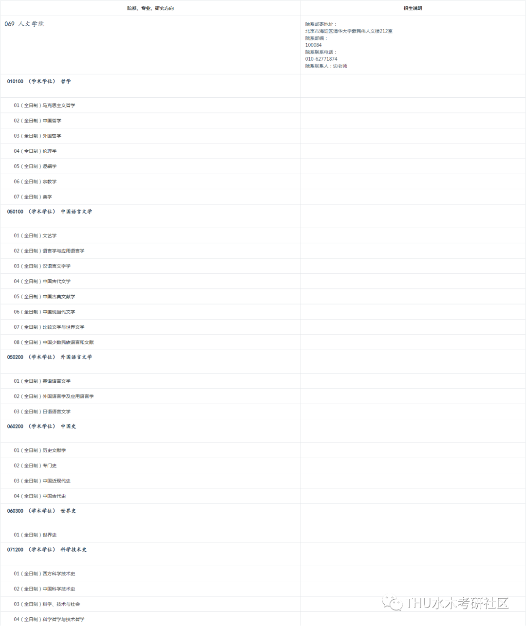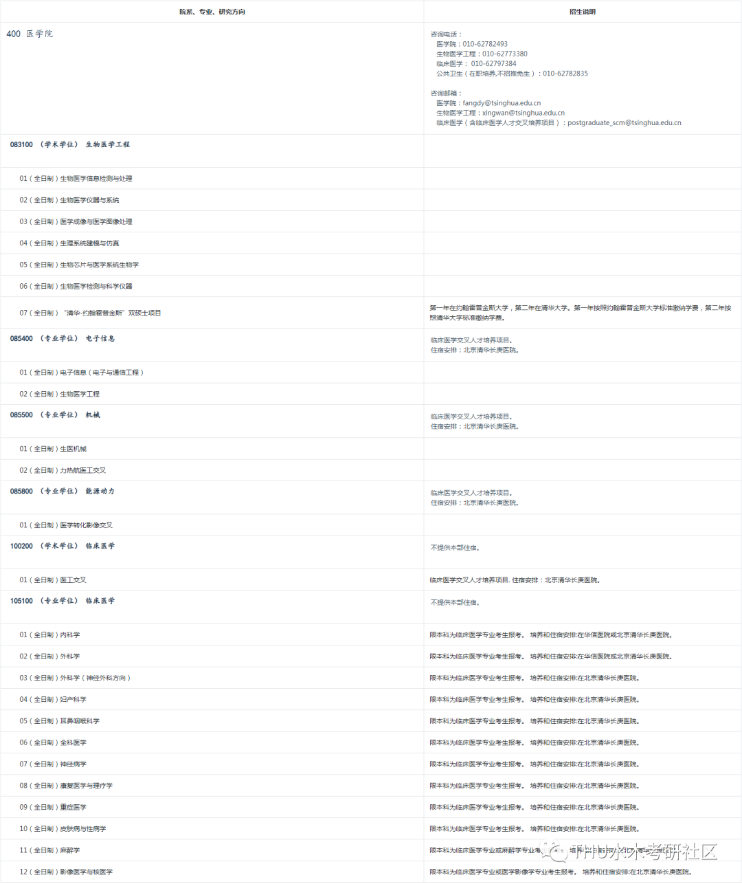 清华大学2023年硕士研究生推荐免试招生专业目录
