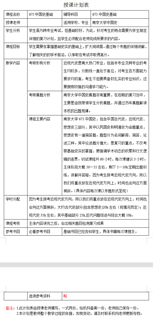新祥旭考研一对一:2023年南京大学中国史考研一对一辅导授课计划