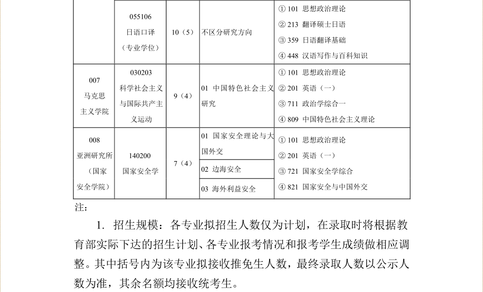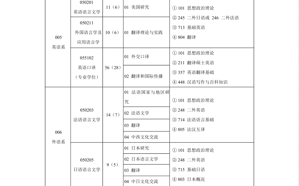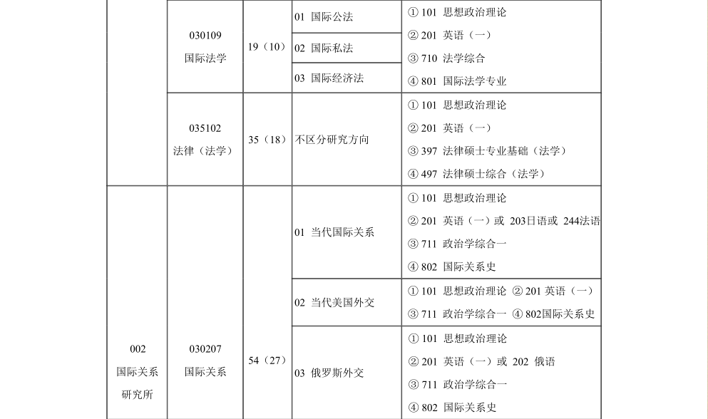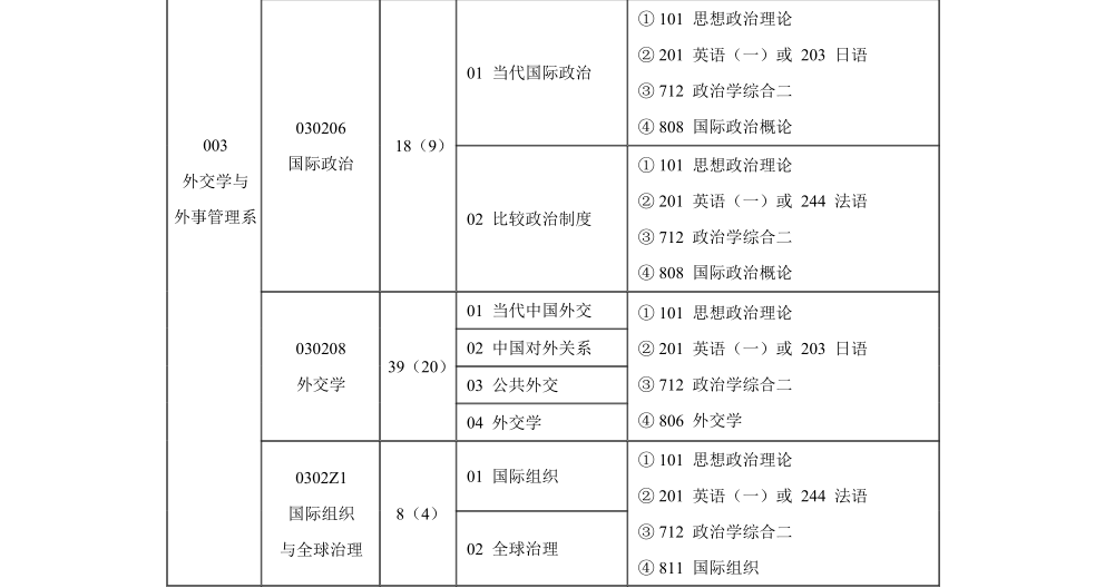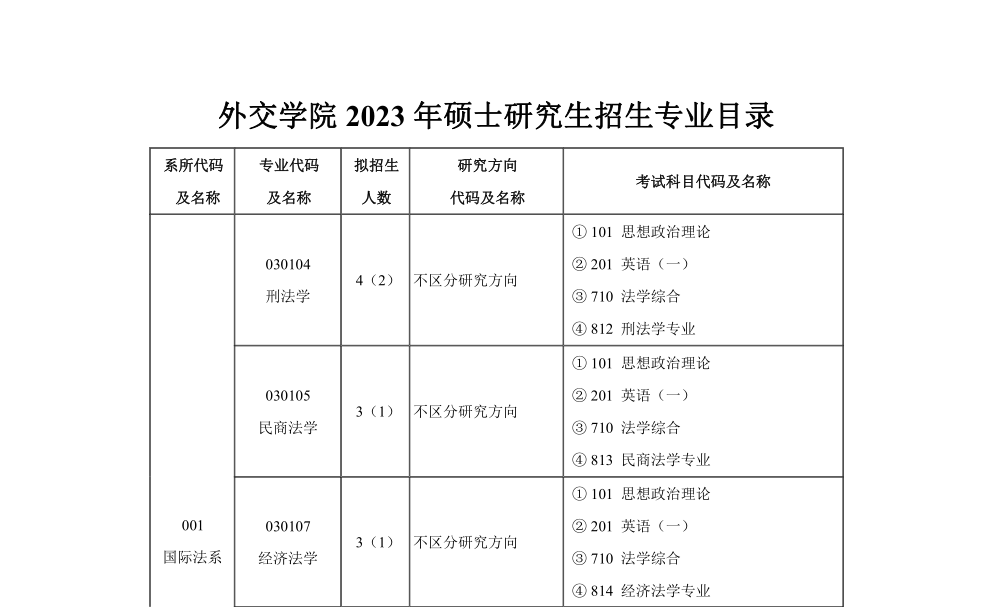 外交学院2023年硕士研究生招生专业目录