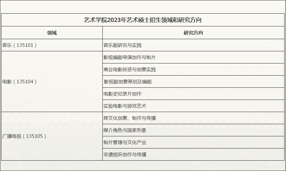 1.北京大学艺术学院2023年艺术硕士招生领域为音乐、电影和广播电视,将采用提前面试的招考方式,面试通过后再参加全国统考。