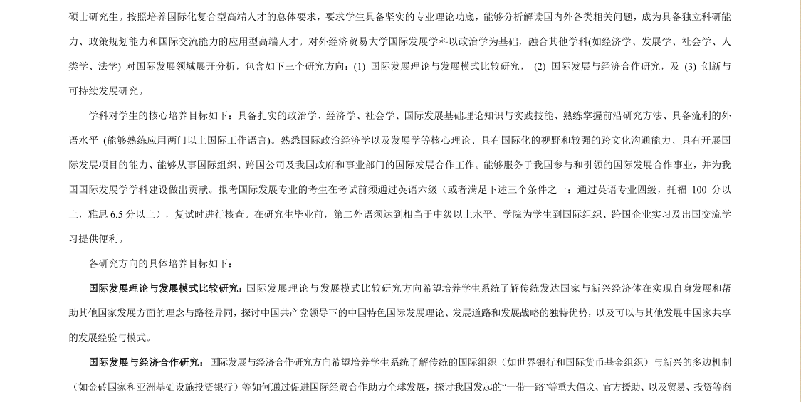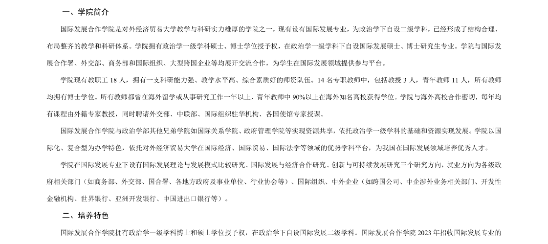 对外经济贸易大学国际发展合作学院国际发展专业2023年考研招生学院简介、办学特色、考试科目、招生人数及专业课参考书