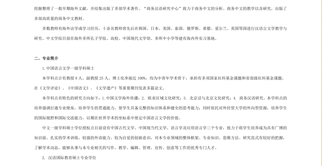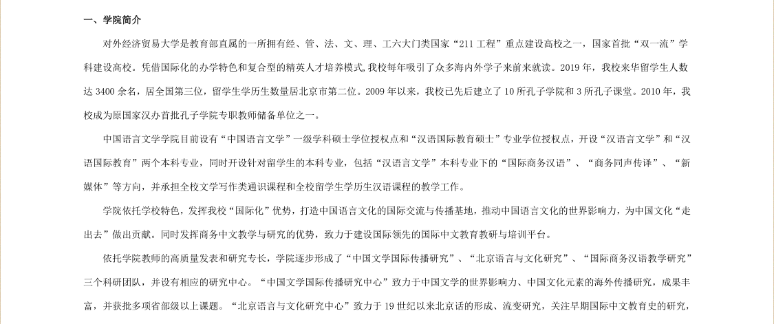 对外经济贸易大学中国语言文学学院中国现当代文学专业2023年考研招生学院简介、办学特色、考试科目、招生人数及考查内容