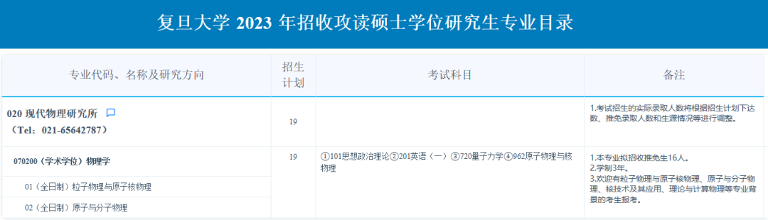 复旦大学考研辅导班:2023年复旦大学现代物理研究所硕士研究生专业目录