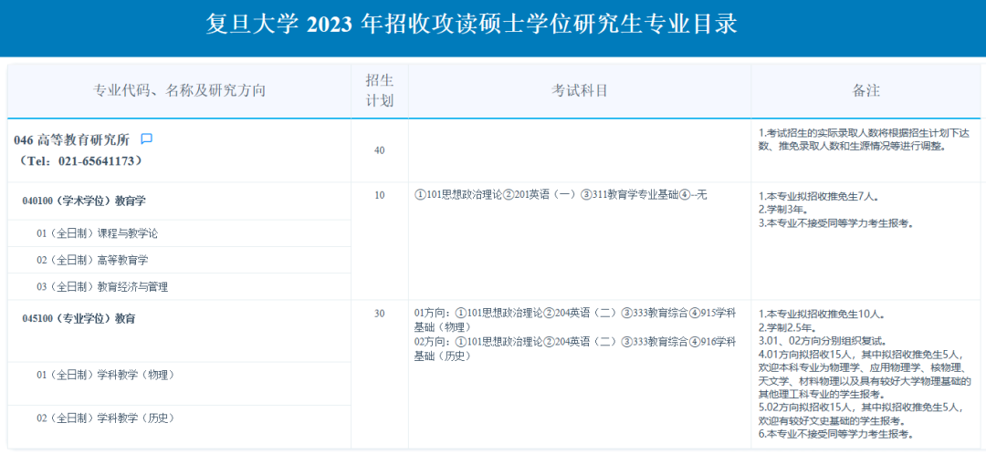 2023年复旦大学高等教育研究所硕士研究生专业目录