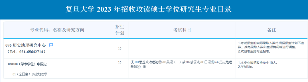 复旦大学考研辅导班:2023年复旦大学历史地理研究中心考研招生专业目录
