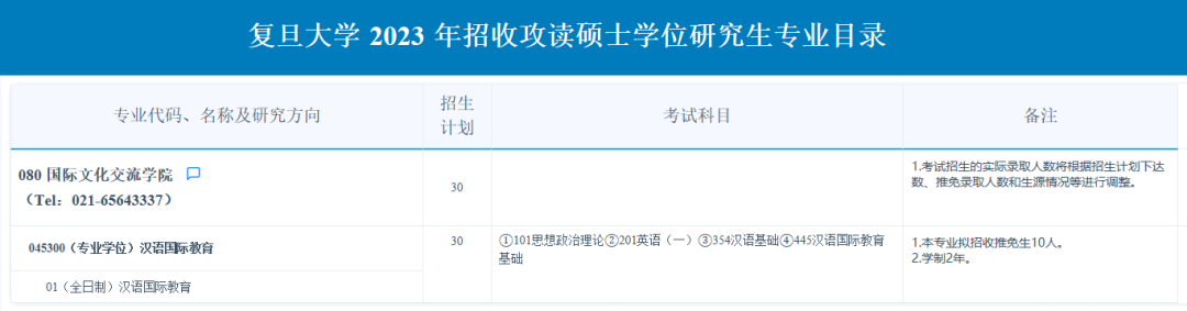 复旦大学考研辅导班:2023年复旦大学国际文化交流学院考研专业目录