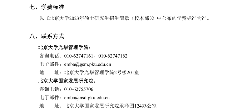 北京大学2023年高级管理人员工商管理硕士(EMBA)招生简章