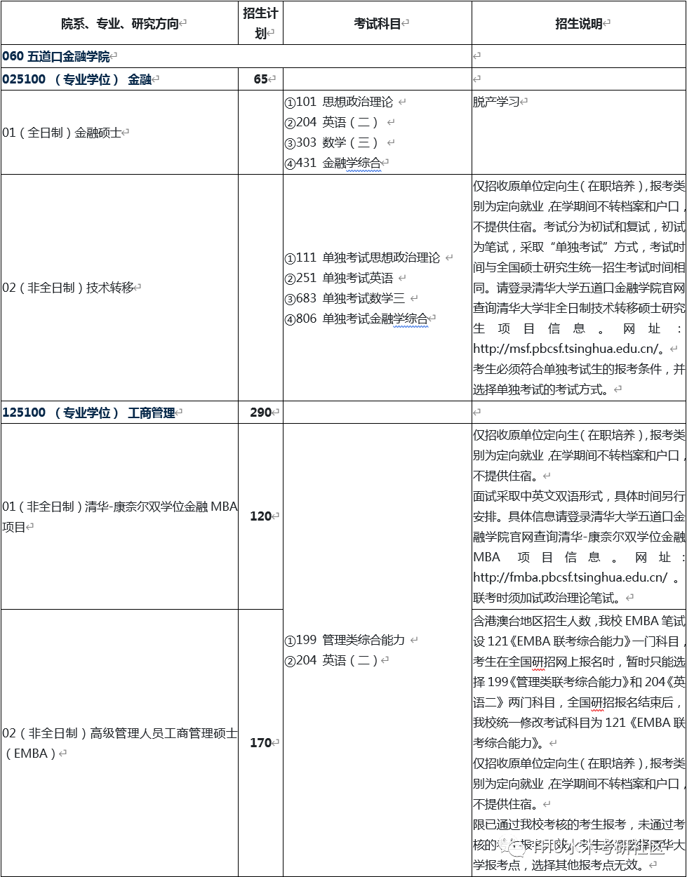 2023年清华大学五道口金融学院硕士研究生招生专业目录、招生人数