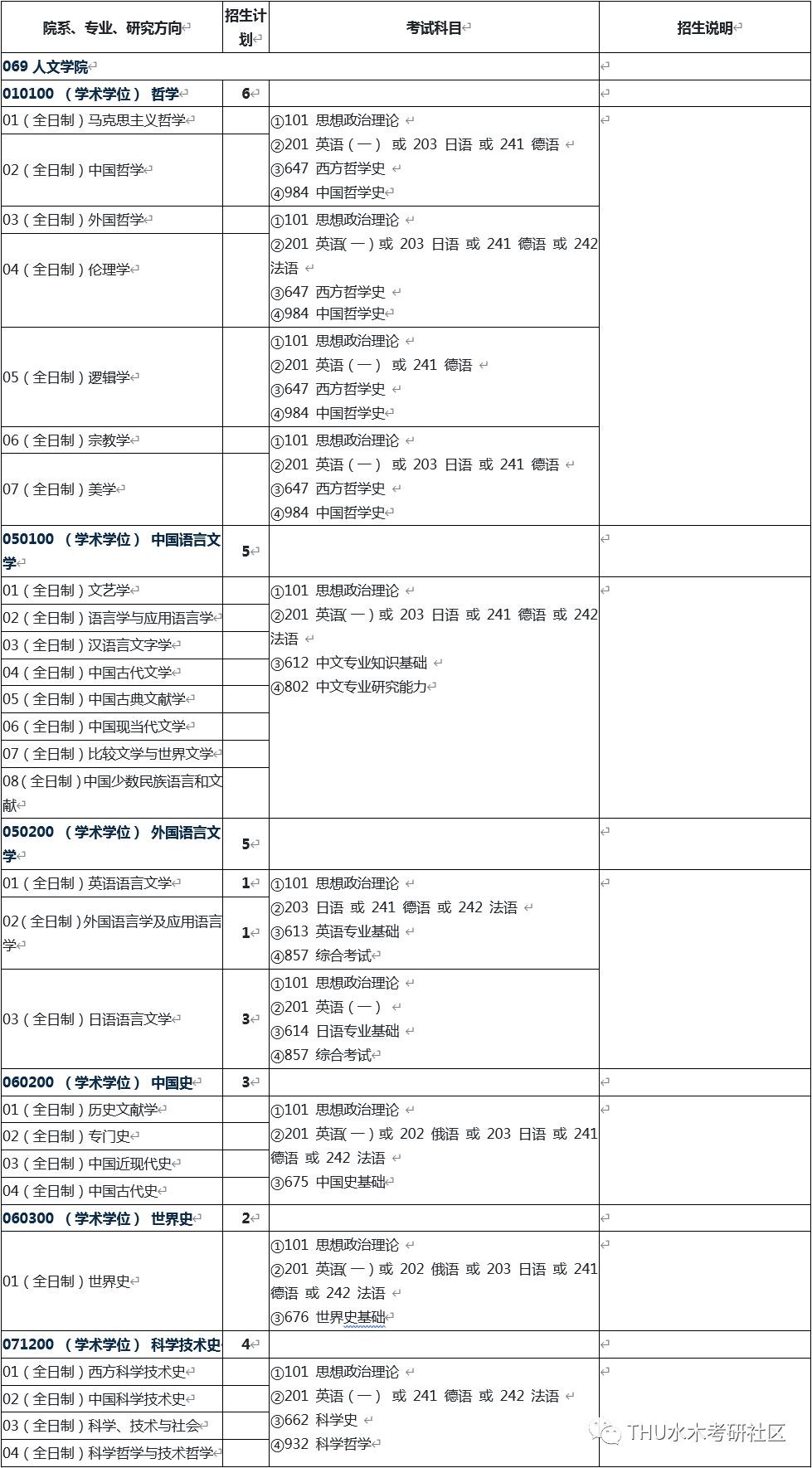 2023年清华大学人文学院硕士研究生招生专业目录、招生人数
