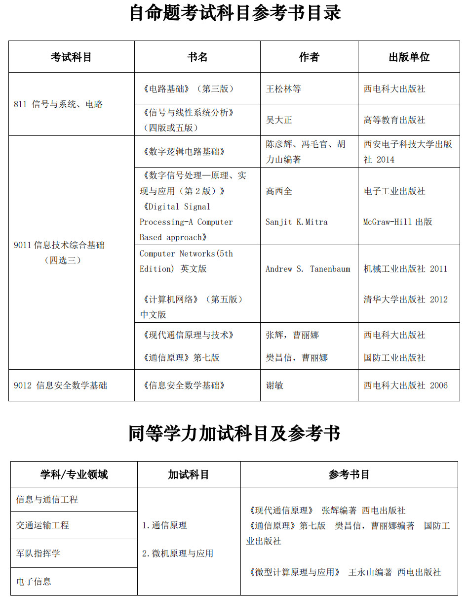 西安电子科技大学考研辅导班:2023年西安电子科技大学通信工程学院考研各专业参考书汇总
