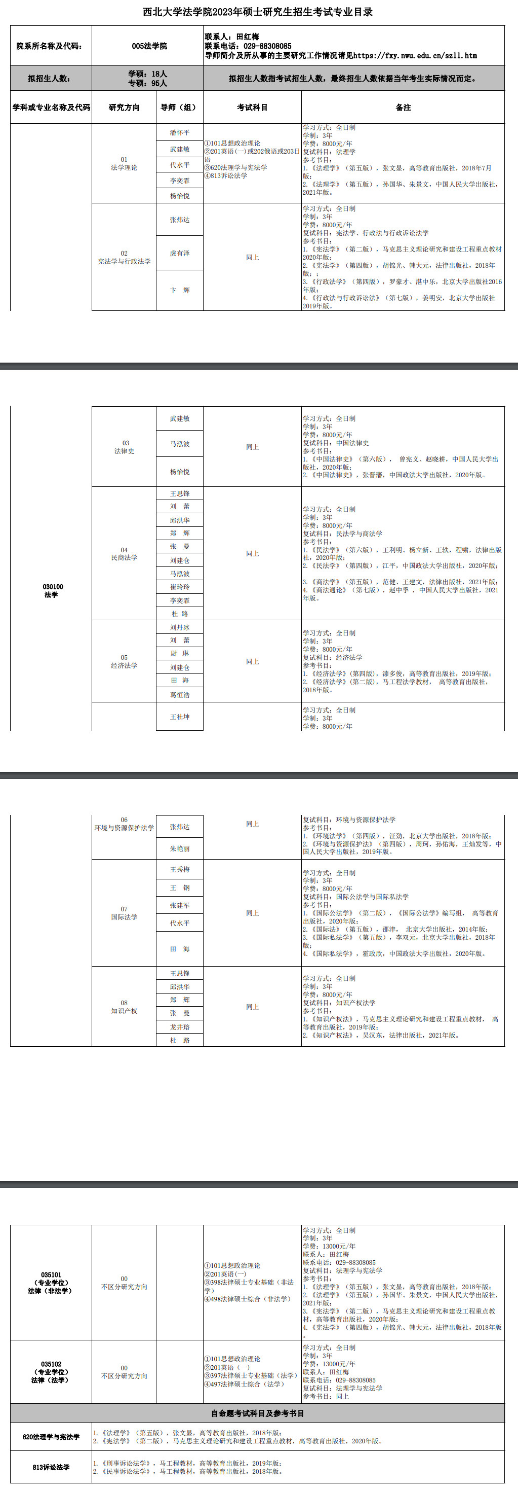 西北大学考研辅导班:2023年西北大学法学院硕士招生专业目录及参考书目